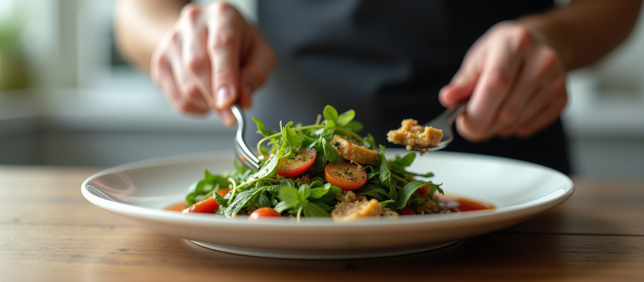 Green salad with tahini-lemon dressing